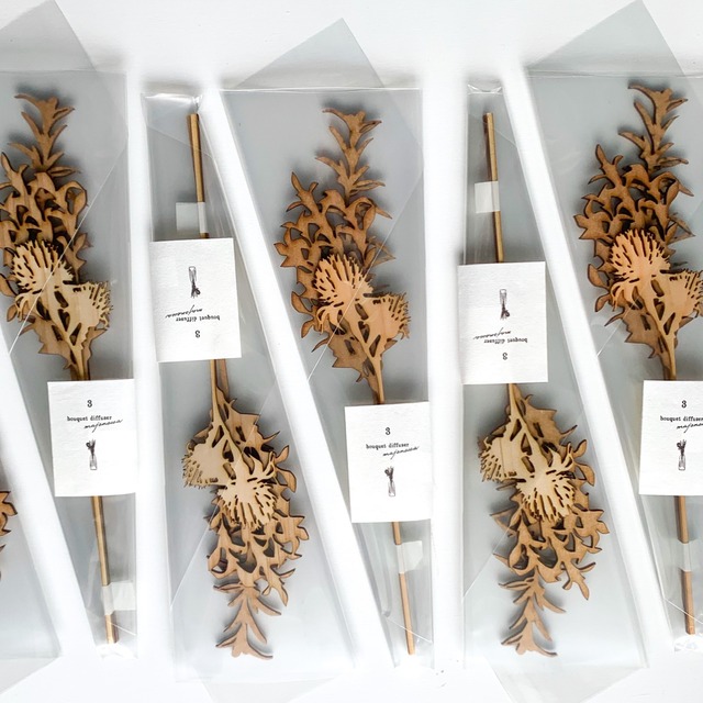 3本セット ブーケ(写真1枚目)と フラワーバック(写真2枚目)の2タイプ。 花はランダムになります。 素材:ヒノキ